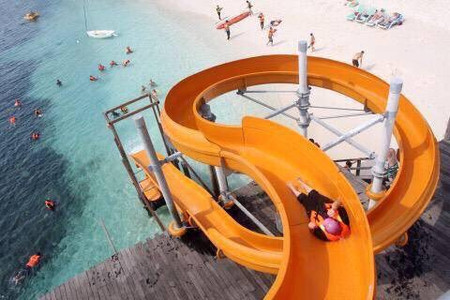 Pulau Rawa岛面积并不大,大约半天便可走遍全岛,只有游客在此居住,因此保存着大自然的原始气息。霓虹色的鱼和其他海洋生物也在这里繁衍生息,海底景观美丽无比,令人念念不忘。 在这里当地业者还打造了酷炫的旋转式滑水梯来供游客玩乐的,重点是,这滑水梯竟然是免费的哦!